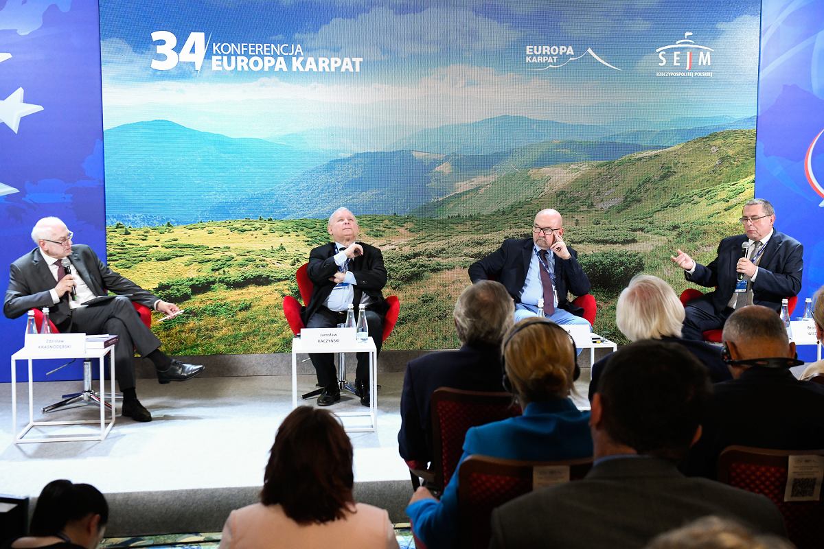 foto: 07.08.2022. Jarosław Kaczyński podczas panelu na Forum Ekonomicznym w Karpaczu w towarzystwie Krasnodębskiego, Legutki i chyba Bronisława Wildsteina . (Fot. Tomasz Pietrzyk) za Gazeta Wyborcza.
