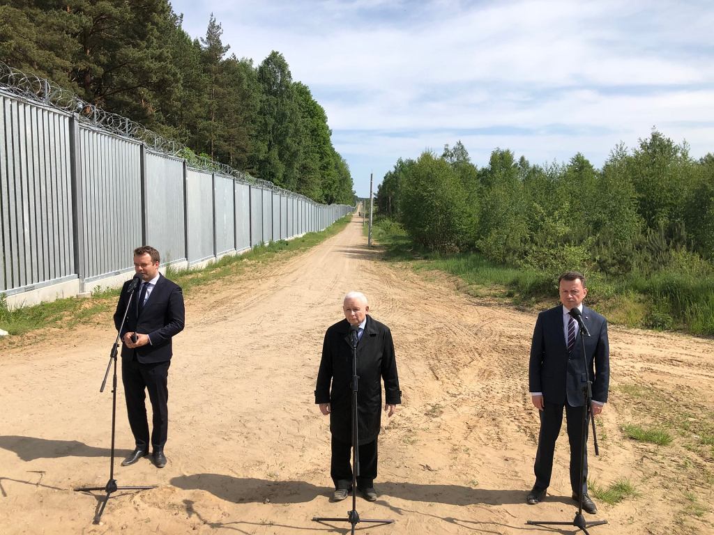 Konferencja prasowa Kaczyńskiego i Błaszczaka przy murze na granicy z Białorusią, 27.05. foto: Grzegorz Dąbrowski za gazeta.pl