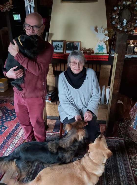 Janek z Joanną Szczęsną w domu Elżbiety i Janka nad Narwią z ich ukochanymi, czworonożnymi przyjaciółmi. Zdjęcie zrobiła Elżbieta Bogucka. … Więcej